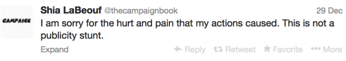 - LaBeouf apologizes again on Twitter (this is his most recent at the time this was written):